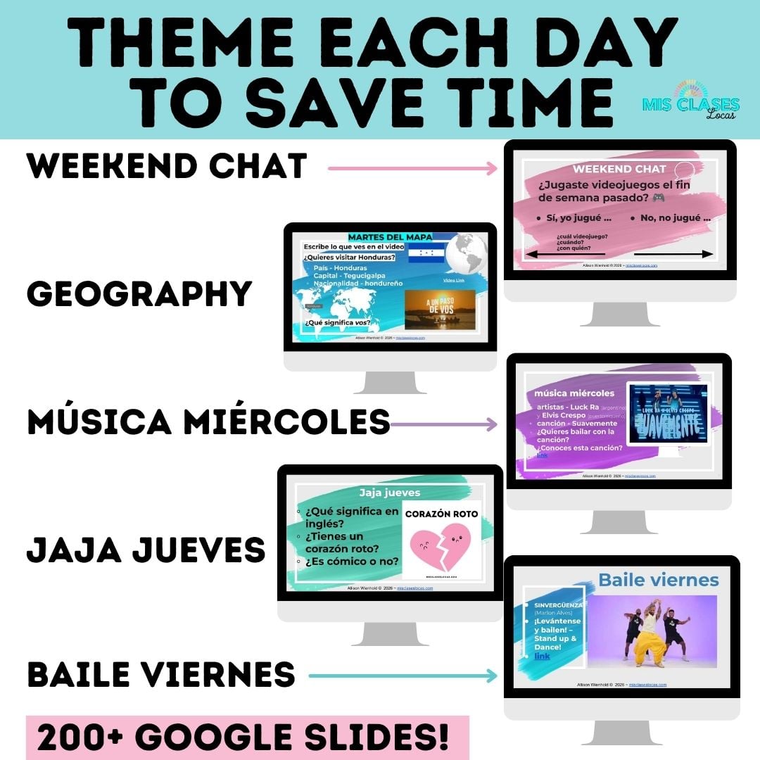 - ✅ Over 200 Slides of Spanish bell ringers to get students engaged & on task