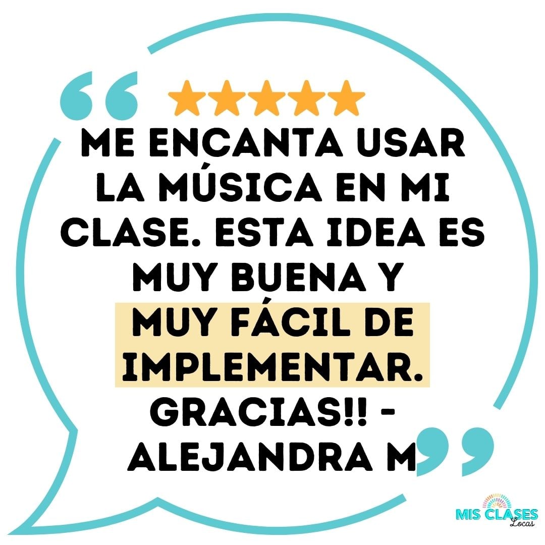 - ⭐⭐⭐⭐⭐ I’m so happy I don’t have to search for what song to teach, a total time saver. – Ana G (used with grades 6-8 Spanish)