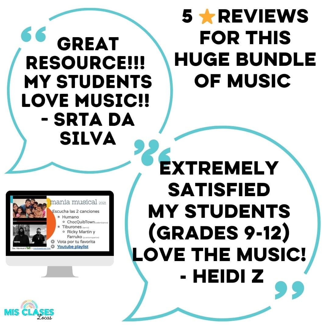 5-star reviews for this Spanish music bundle from other Spanish teachers